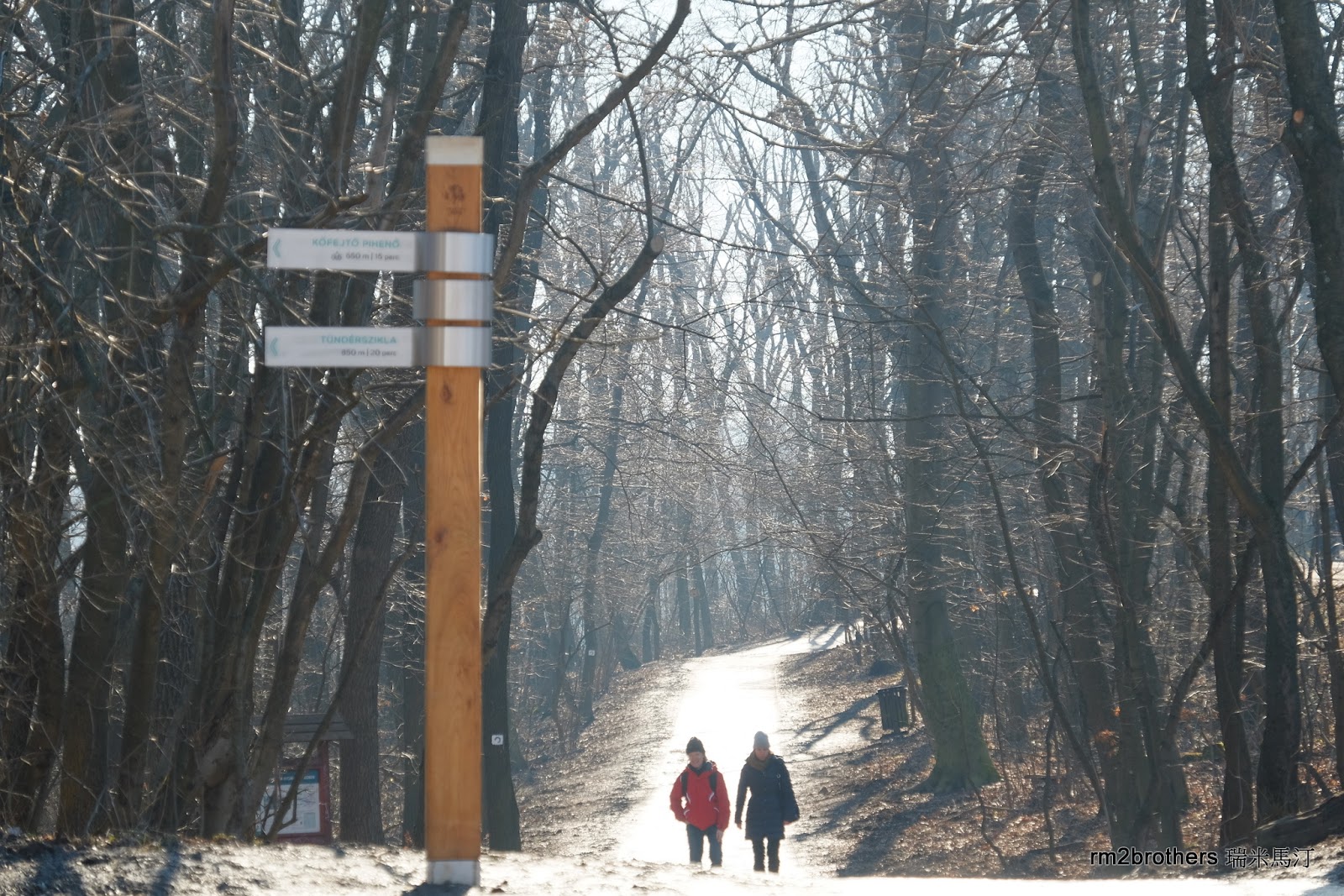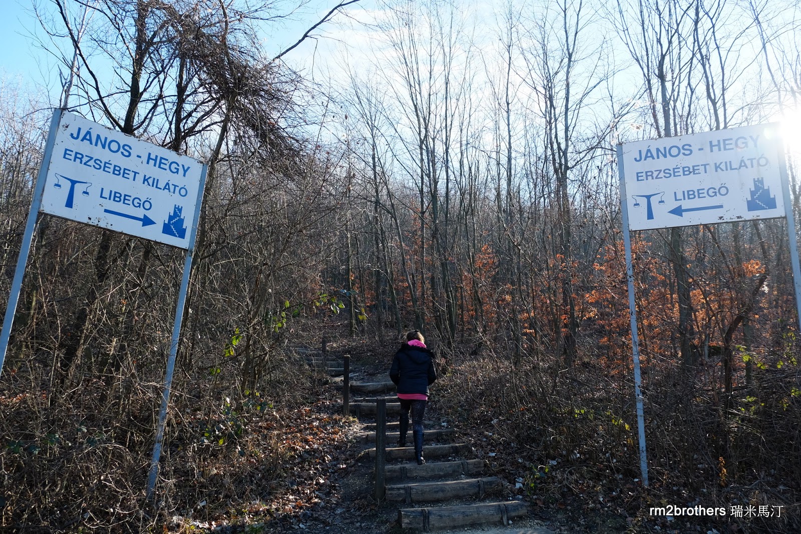 這個叉路左右兩條都可以到達 Erzsébet-kilátó觀景塔,通常是去程走左邊斜坡往上,回程由右邊樓梯下來。