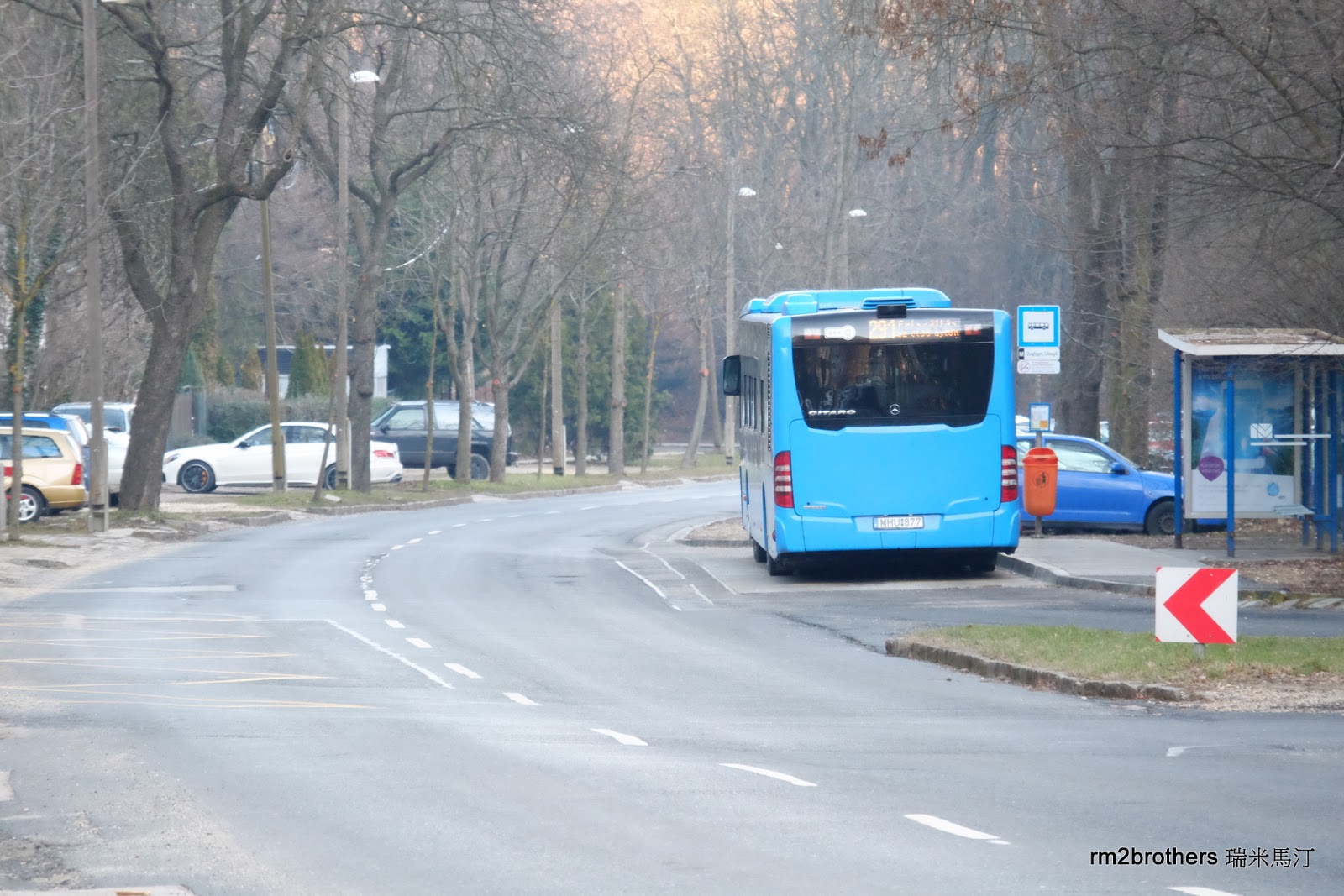 下纜車後,沿著馬路往前走大約150公尺(步行約兩分鐘),馬路的對面就是同名的 Zugliget Libegő 公車站,