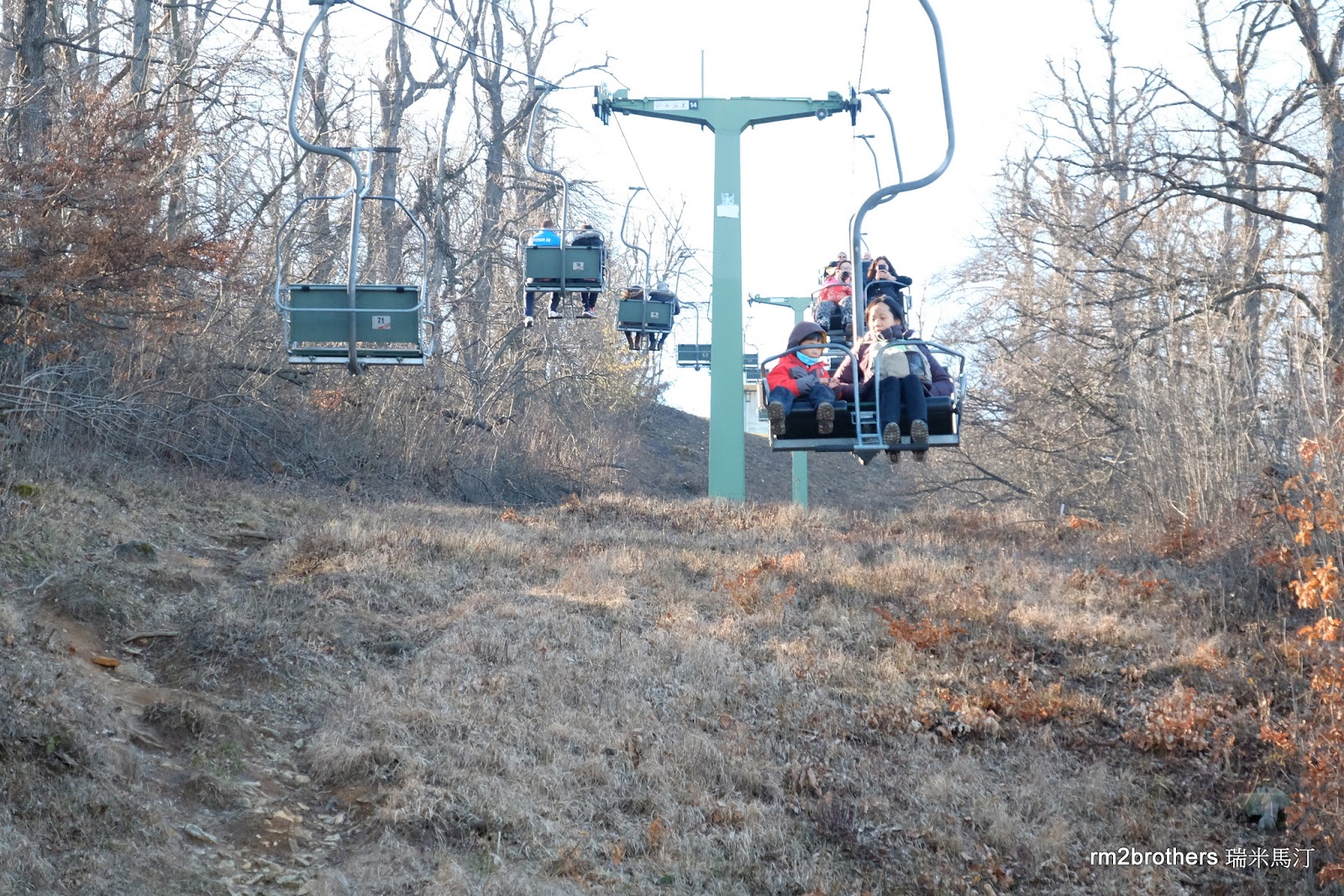如果有搭過滑雪纜車的人對這種 Chairlift 應該不陌生,而且這裡的 Chairlift 前方還有圍欄。