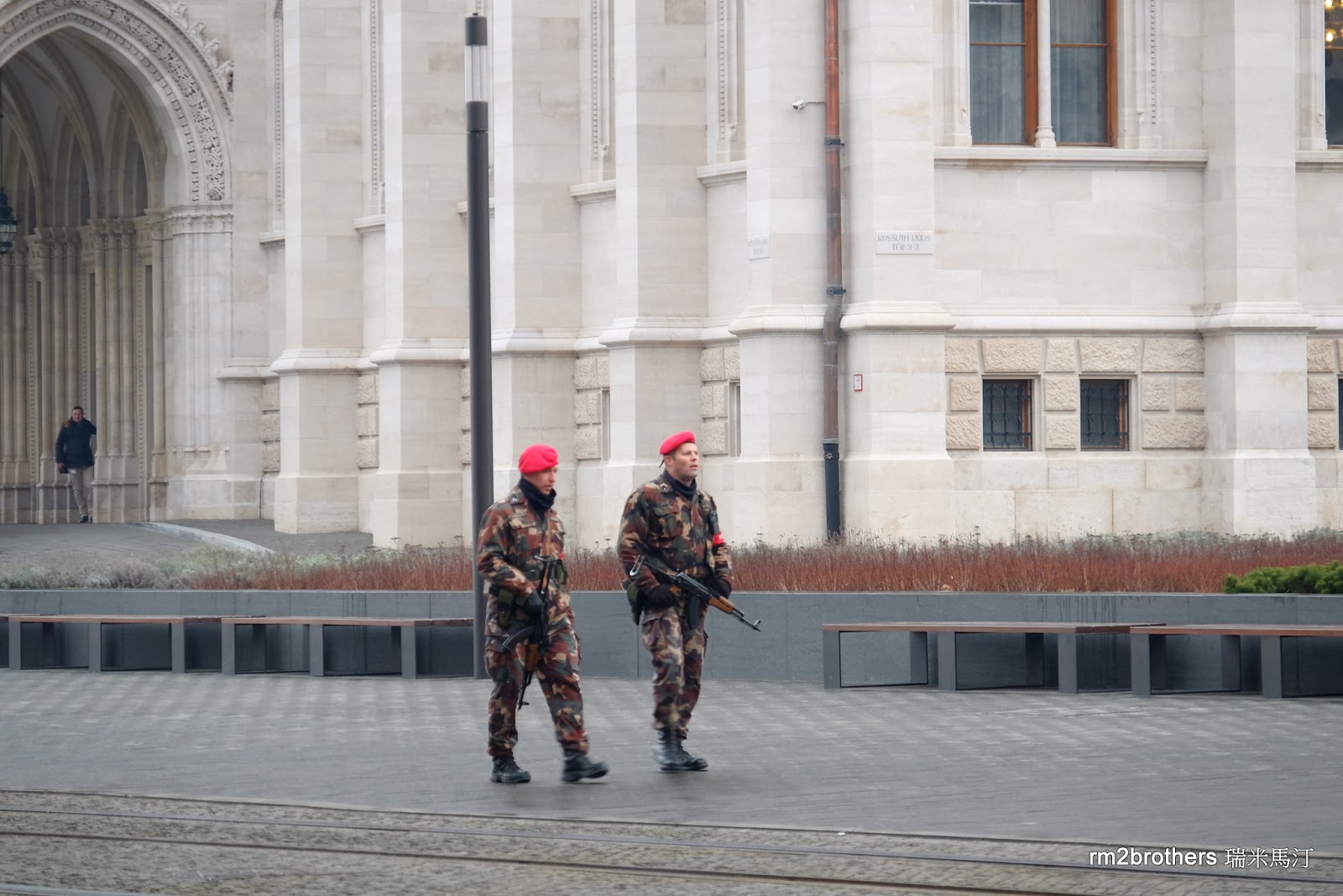 匈牙利國會大廈外圍也有軍警在巡邏。