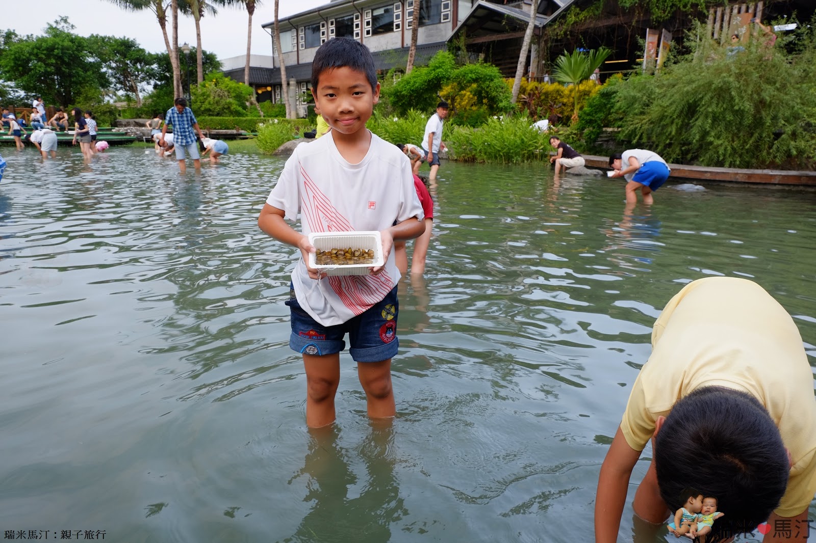 來到花蓮,覺不能錯過這個摸蜆兼洗褲的好地方。花蓮立川漁場不但有好吃的餐廳,也有摸蜆體驗活動可以參加唷!這裡的摸蜆體驗池水位不深,大概到小朋友的膝蓋而已,是一個可以放心讓小朋友來玩的好去處。