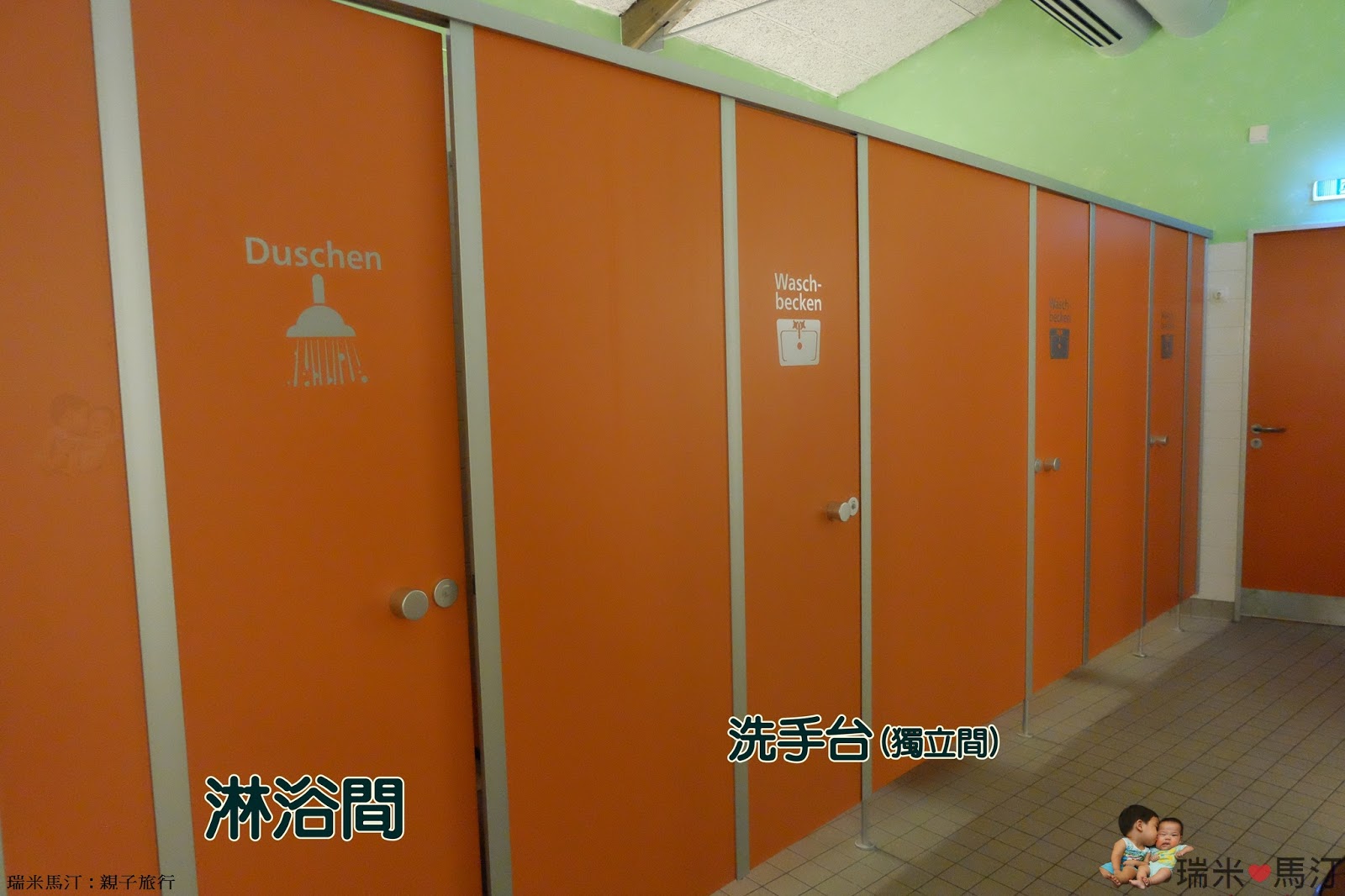 Hanse Camping 露營區的中央有一大棟公設,管理員稱它為 Facility. 裡面包含有男女衛浴(免費)、家庭浴室(費用另計)、廚房(免費)、交誼廳(免費、可飲食、充電)、嬰兒尿布間…等 ,另外還有投幣式洗衣機、烘衣機等,但是忘記拍攝了。