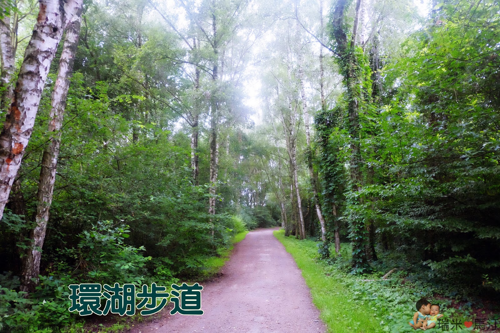 環湖步道林蔭茂盛,有些地方離湖近有些離湖面較遠。