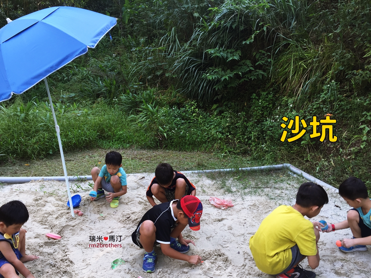 松鼠區旁邊還有個沙坑,裡面的白沙可以讓小孩玩得很開心。