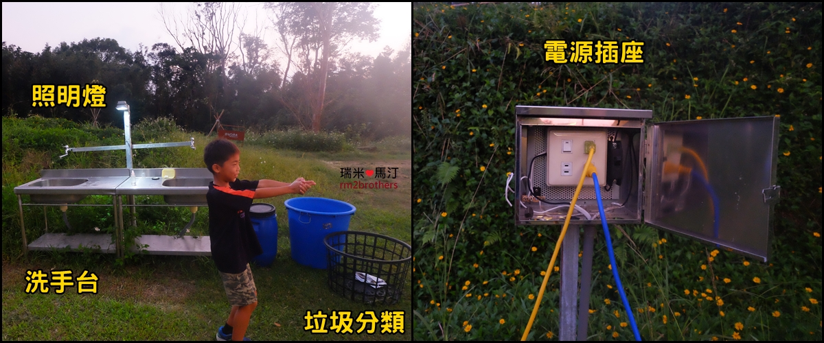 這裡的洗手檯、垃圾桶和電源插座都是幾帳共用一組,所以電源線也不能帶太短喔。洗手台有附照明燈。