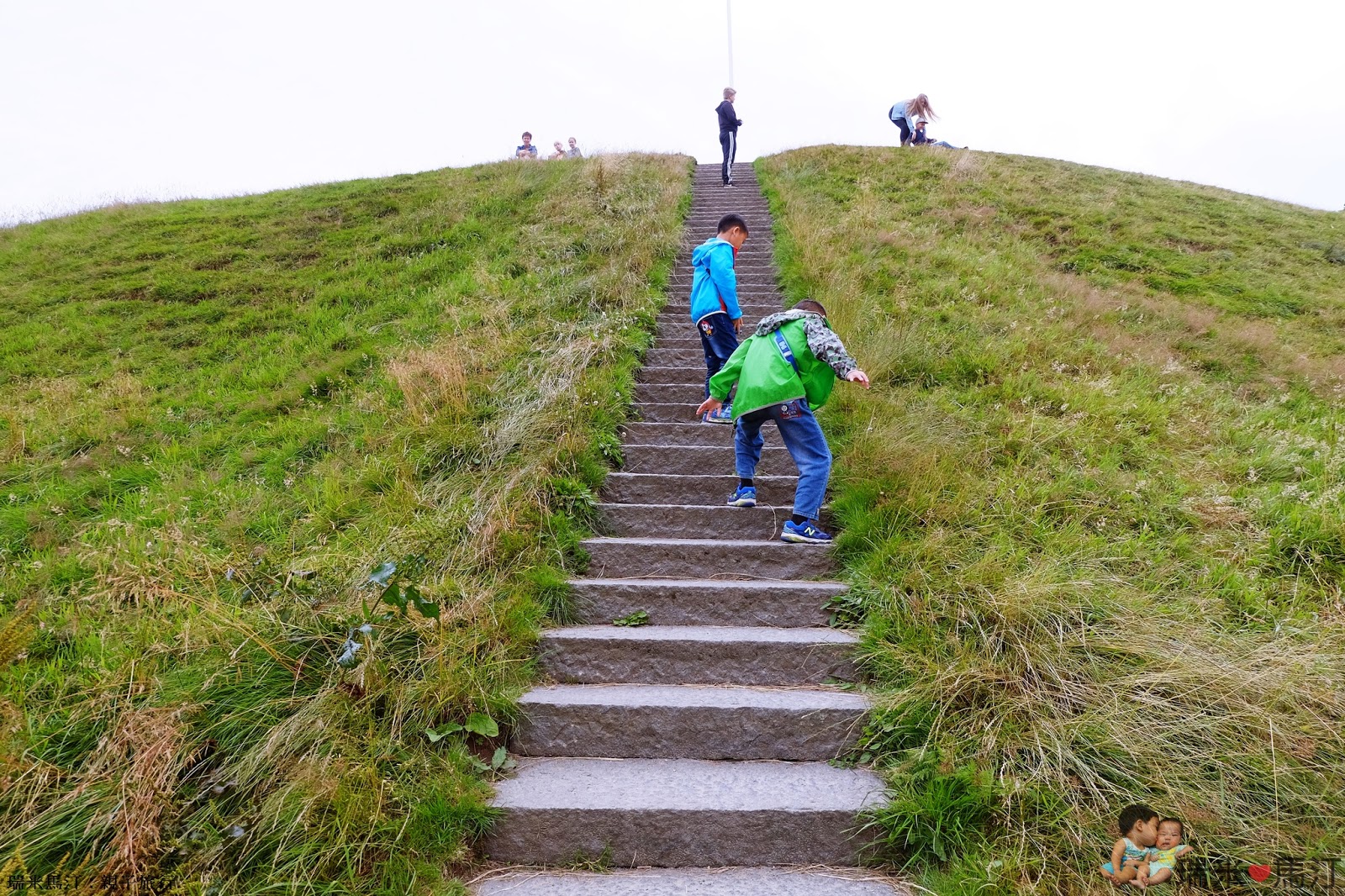 GPS帶我們到達 Kongernes Jelling 後,發現一邊是房子(包含博物館在內),而另一邊好像公園一樣有著大草皮,很多人在草皮上野餐呢!