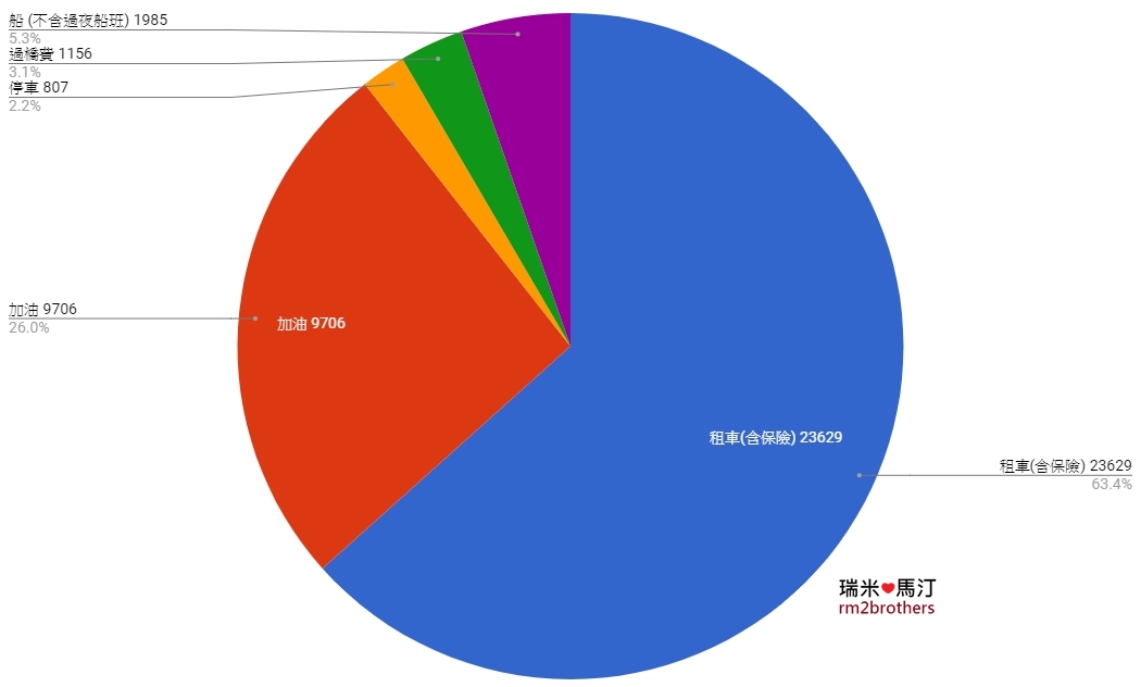 由於每個人對於機票的選擇不同,無論是下手時間、航空公司喜好,或想飛的航點不同,都會造成票價有很大的差異,所以把機票拿掉來看,不含機票的總花費大約 10萬元新台幣。