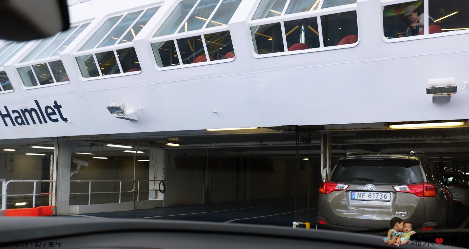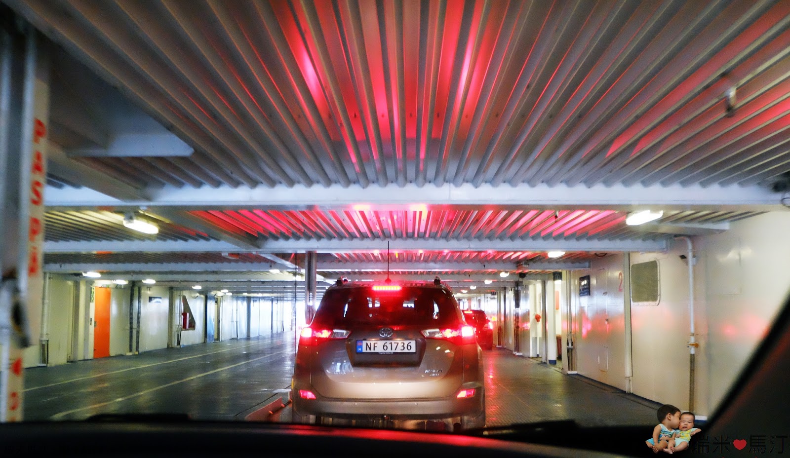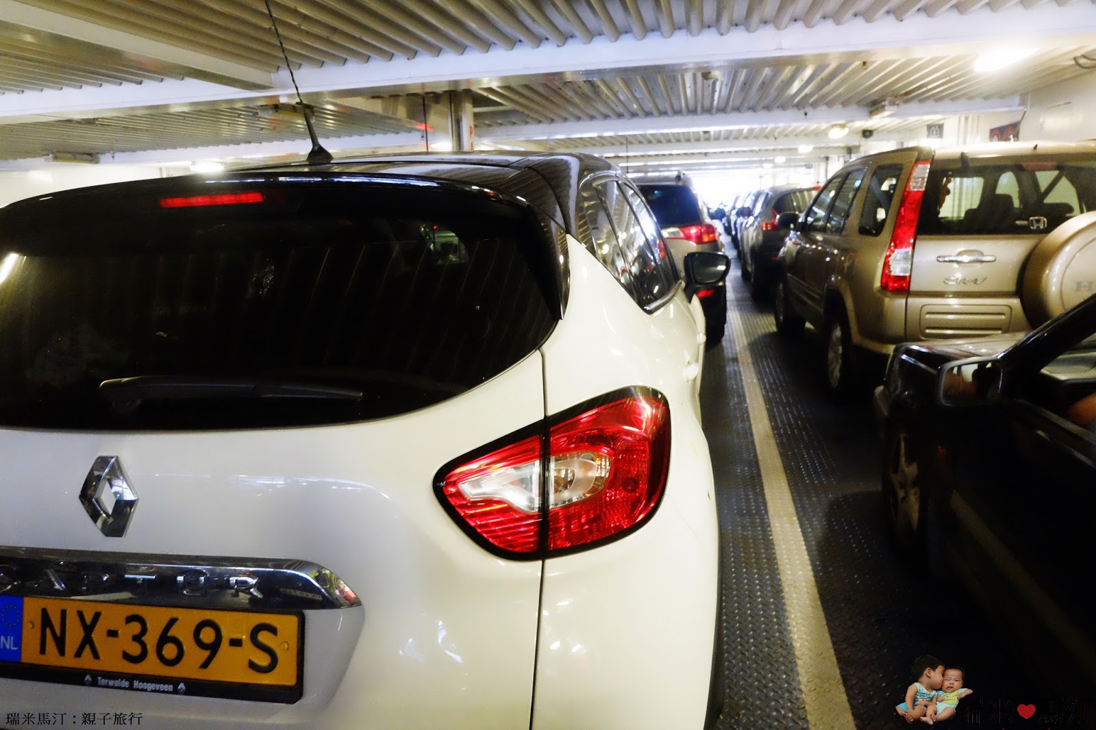 開車上船好新奇啊~ 一路上就跟著前車就對了,每個轉折路口也都有工作人員指揮方向,完全不需要開口。