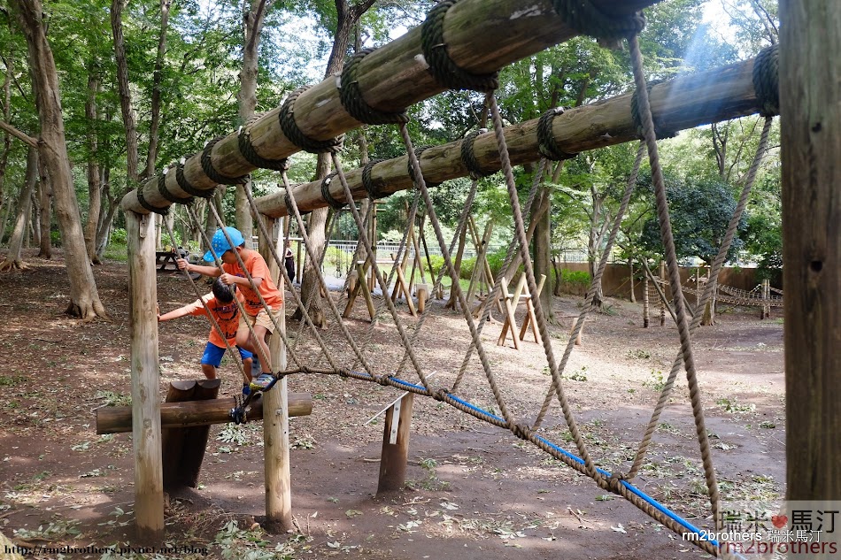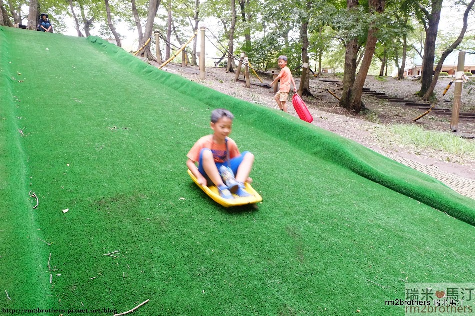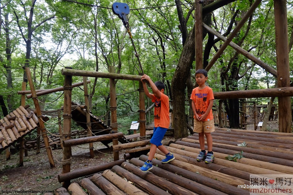 森林冒險區,大片森林中有各式的山訓器材還有滑草場喔!