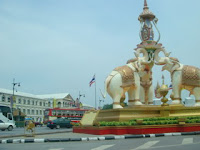 1. 在臥佛寺按摩完,我們分別坐了兩台計程車要到百貨公司…避免我們搞丟或者司機不知道我們在說啥鬼屁..所以事先有請民宿的員工幫我們用泰文寫了一遍地點..這樣方便我們上車拿給司機看即可..我們上了車也是這樣做…不過車子開了有一會兒了…還要上橋唷?我這樣詢問Jun(因為來過幾次曼谷所以他自稱是”曼谷通”),於是曼谷通拿出地圖看了看說應該快到了吧…因為在橋上看不到路名…後來經過了一條河…這時陳Jun覺得怪怪的了…不應該過河才是呀…看來我們是被”繞路”了..又開了一陣子..司機停在一處hotel旁…跟我們說到了..心想見鬼了..誰跟他說我們要去hotel的..而且紙上面明明就寫得清清楚楚呀…司機跟我們”莊孝維”一陣子後說他搞錯了…就帶我們到百貨公司..經過幾番波折終於看到百貨公司了…但奸詐的司機偏偏不停人多的地方..反鑽進人少車少的地方放我們下車..後來勇敢的Jun準備只給跟我們另一台計程車同樣的車錢..叫我先下車他要力爭到底..司機還跟著下來找他吵唷..後來Jun又說他要打電話給警察..司機才軟化..我們就很帥氣頭也不回的”飛奔”..其實心臟病都要發了我!!@@…這就是這趟旅行的另一件衰事囉~
