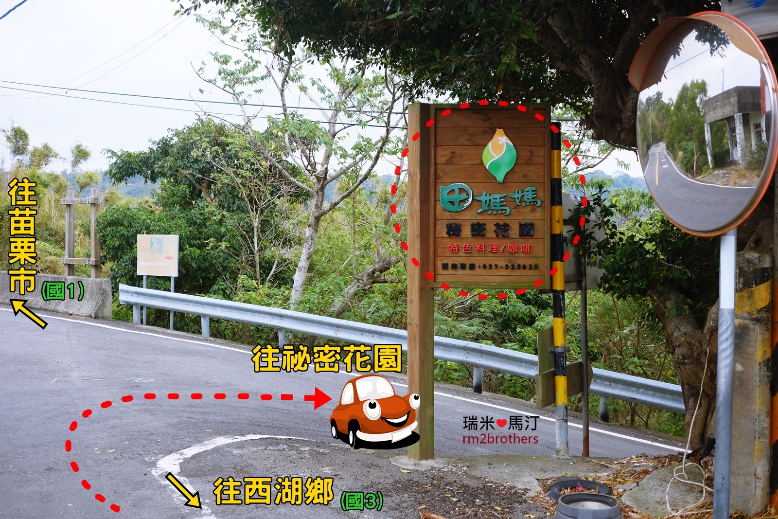 西湖祕密花園位於西湖鄉(國3)和苗栗市(國1)的中間
