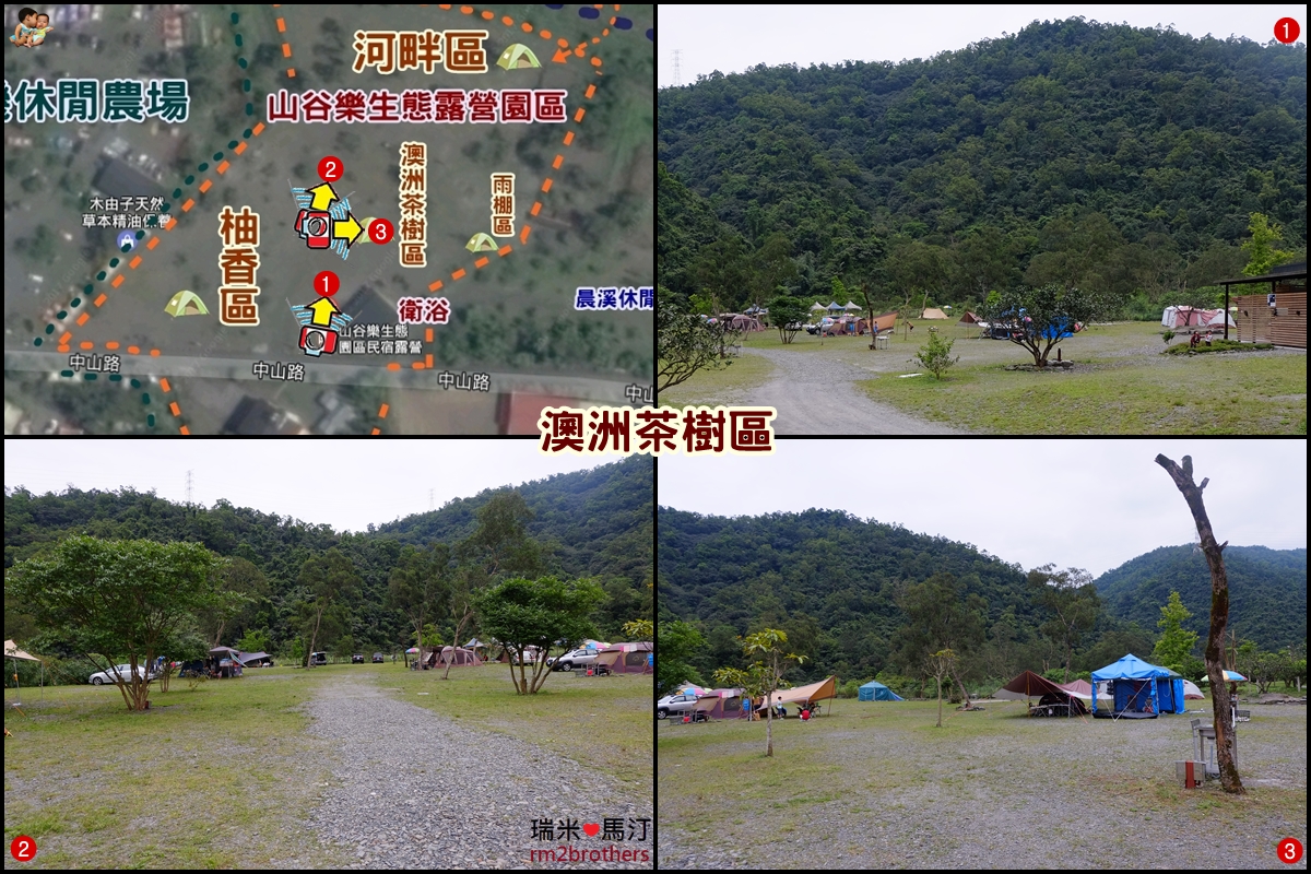 左轉進入山谷樂露營區,可以看到左方是柚香區,右邊是漂亮的衛浴,裡面則是澳洲茶樹區以及河畔區。