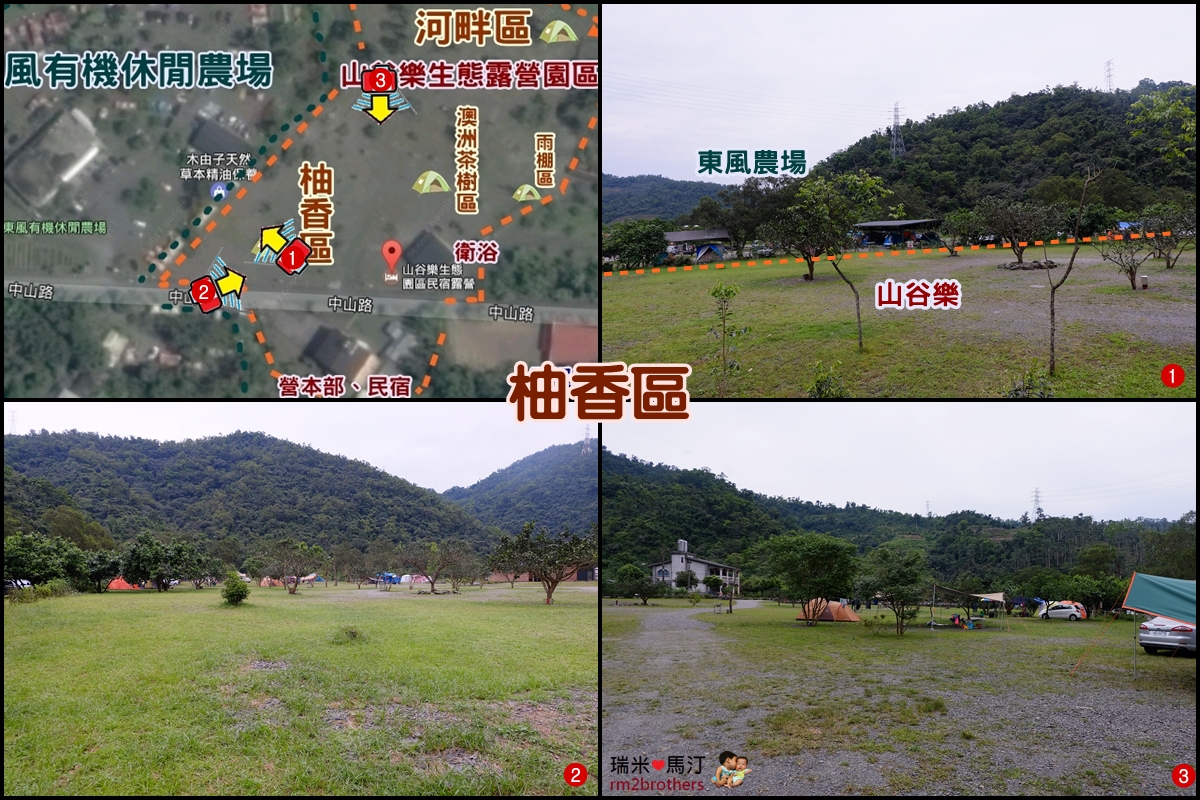 其實真正與東風露營區相鄰的只有柚香區,由上圖可以看到,柚香區的一邊與東風露營區僅一線之隔,