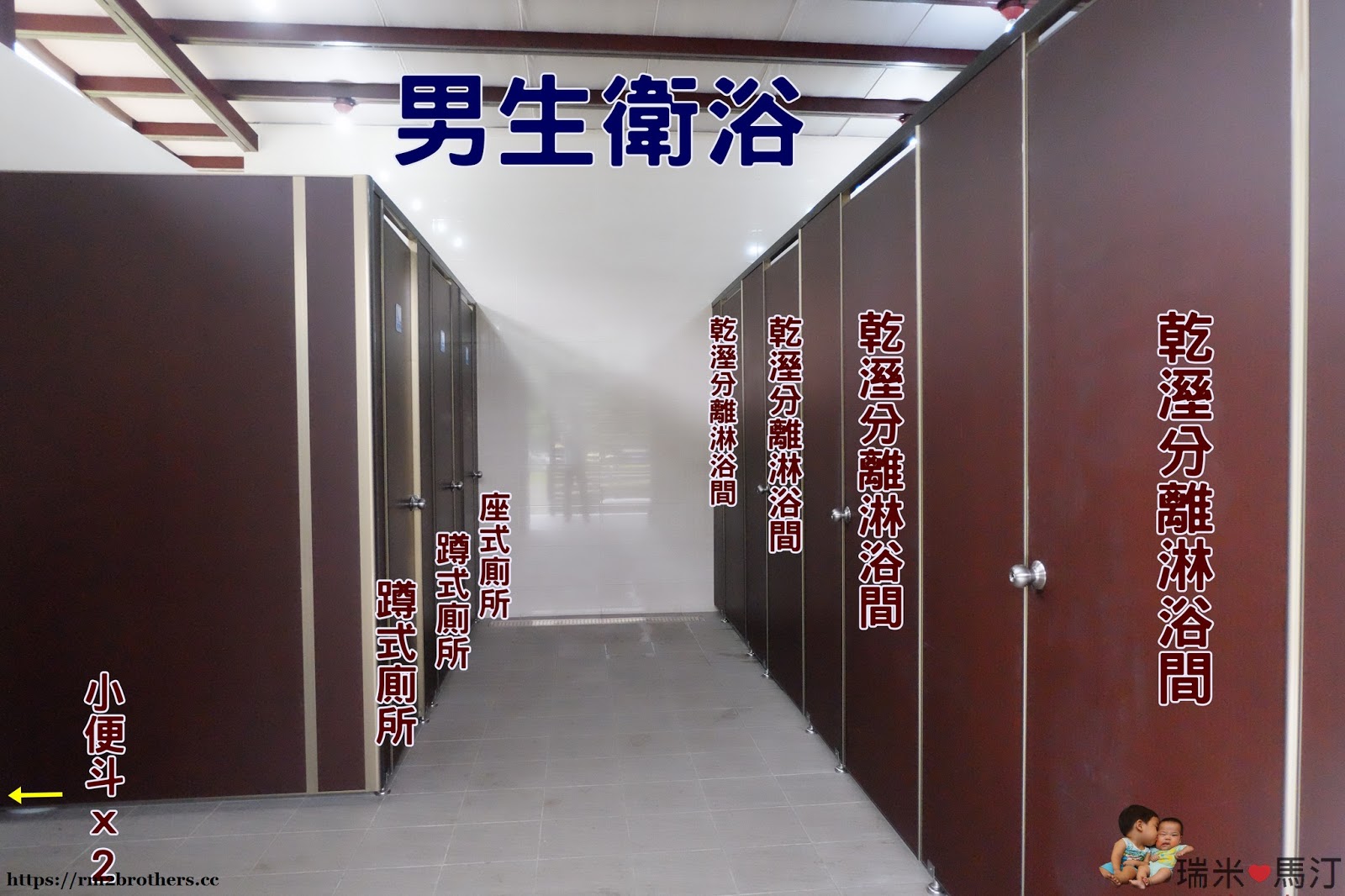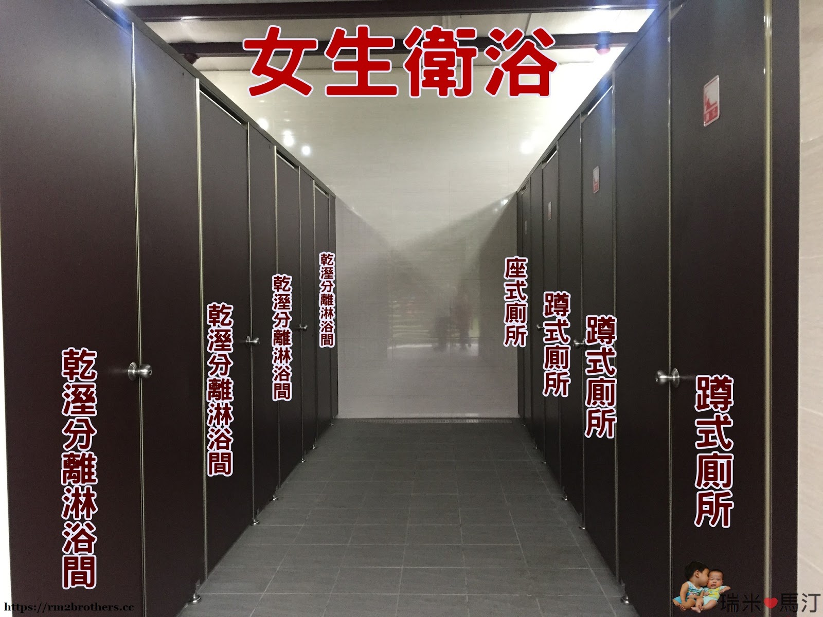 衛浴男女是分開的,男左女右別跑錯囉。