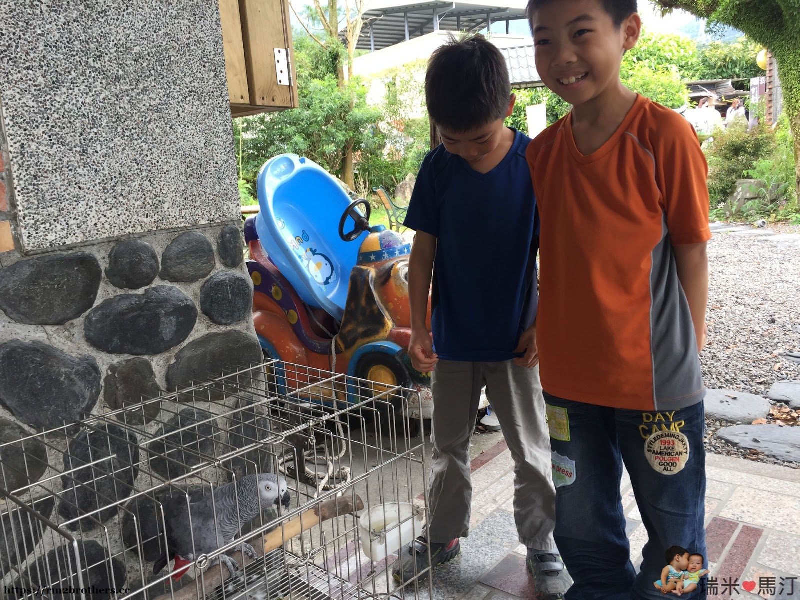 餐廳外除了有魚外,還有鸚鵡,小朋友看得很專心。