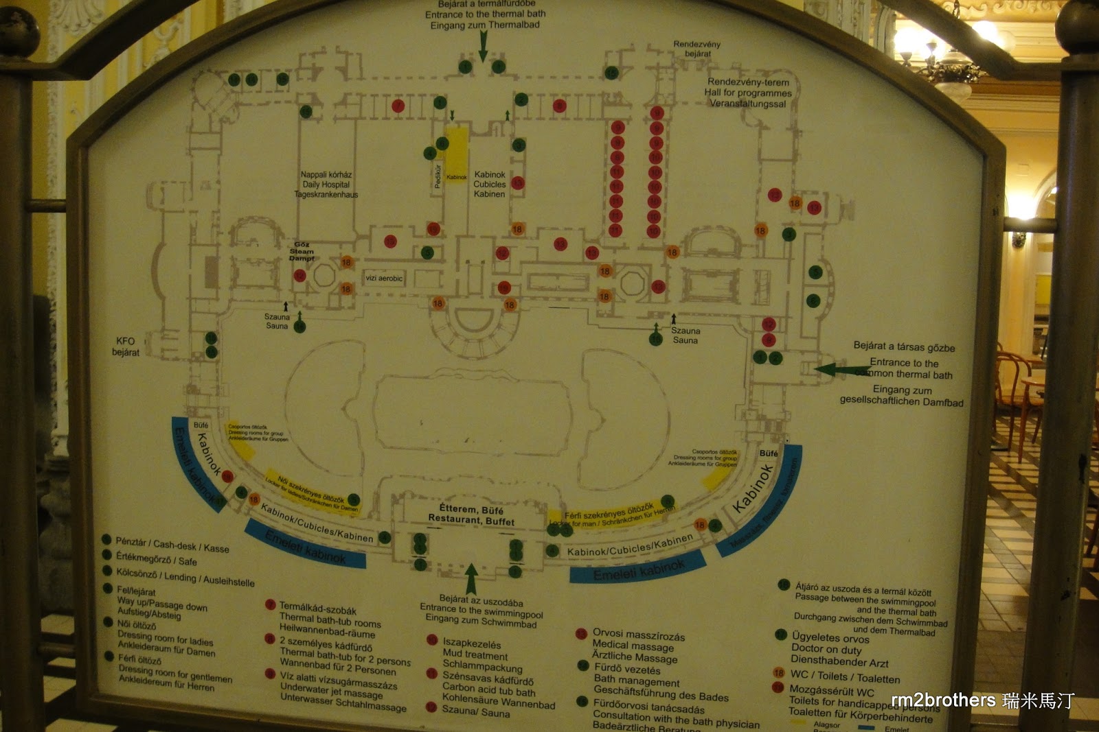 上圖是塞切尼溫泉浴場的配置圖,圖上方的相機處就是前一張入口的拍照處。